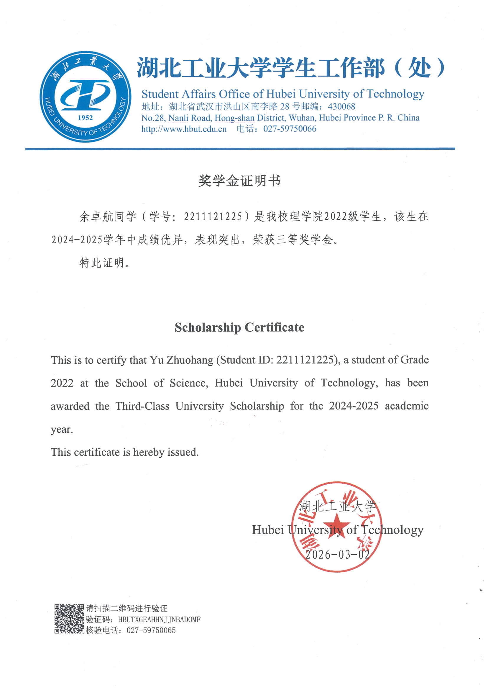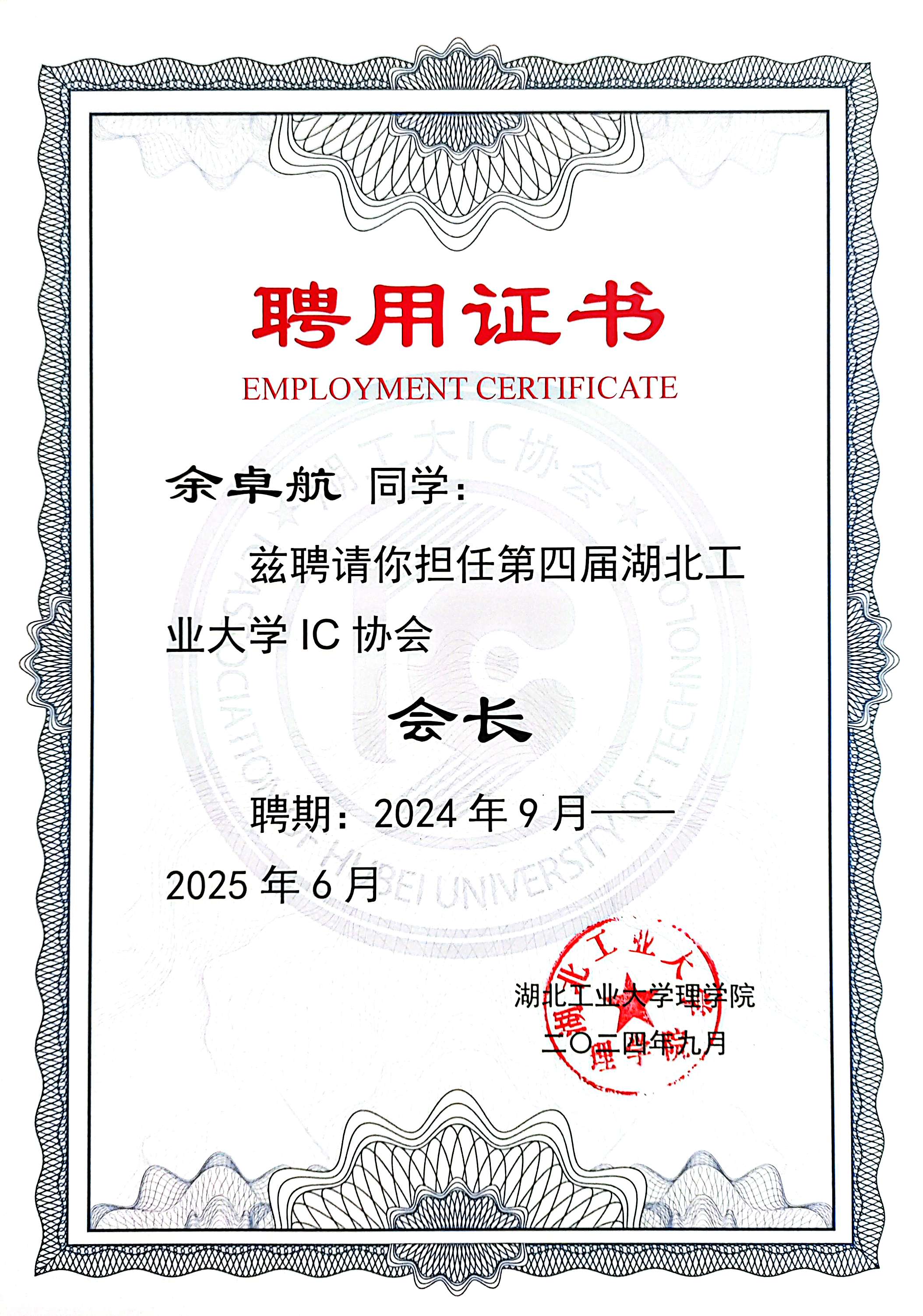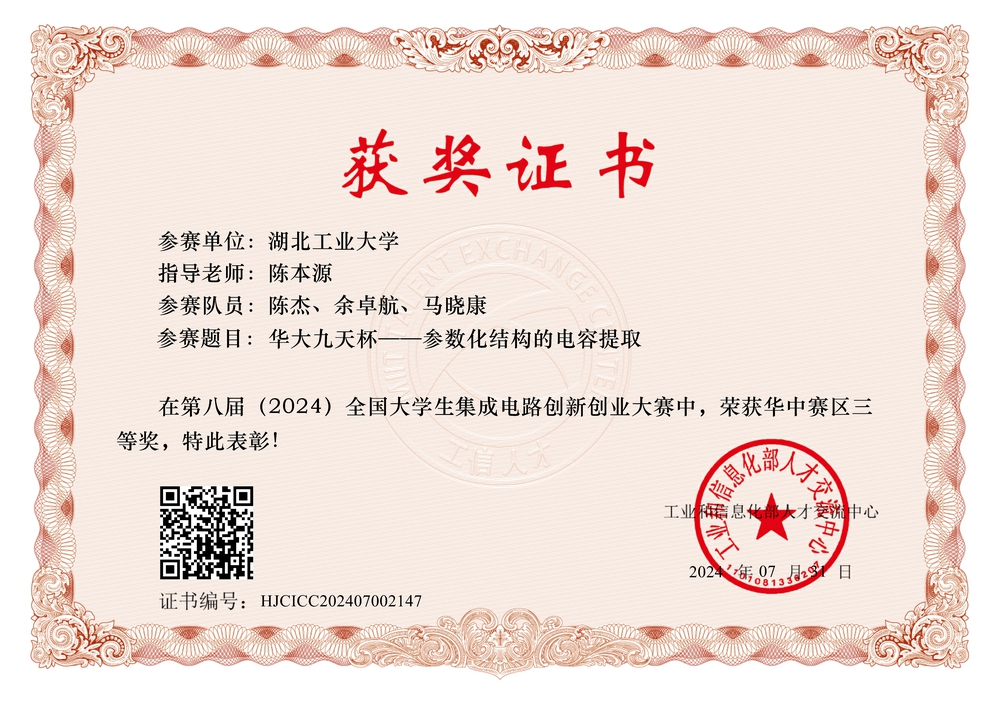 湖北工业大学 理学院(芯片产业学院) 集成电路设计与集成系统专业 2022.09 - 2026.06