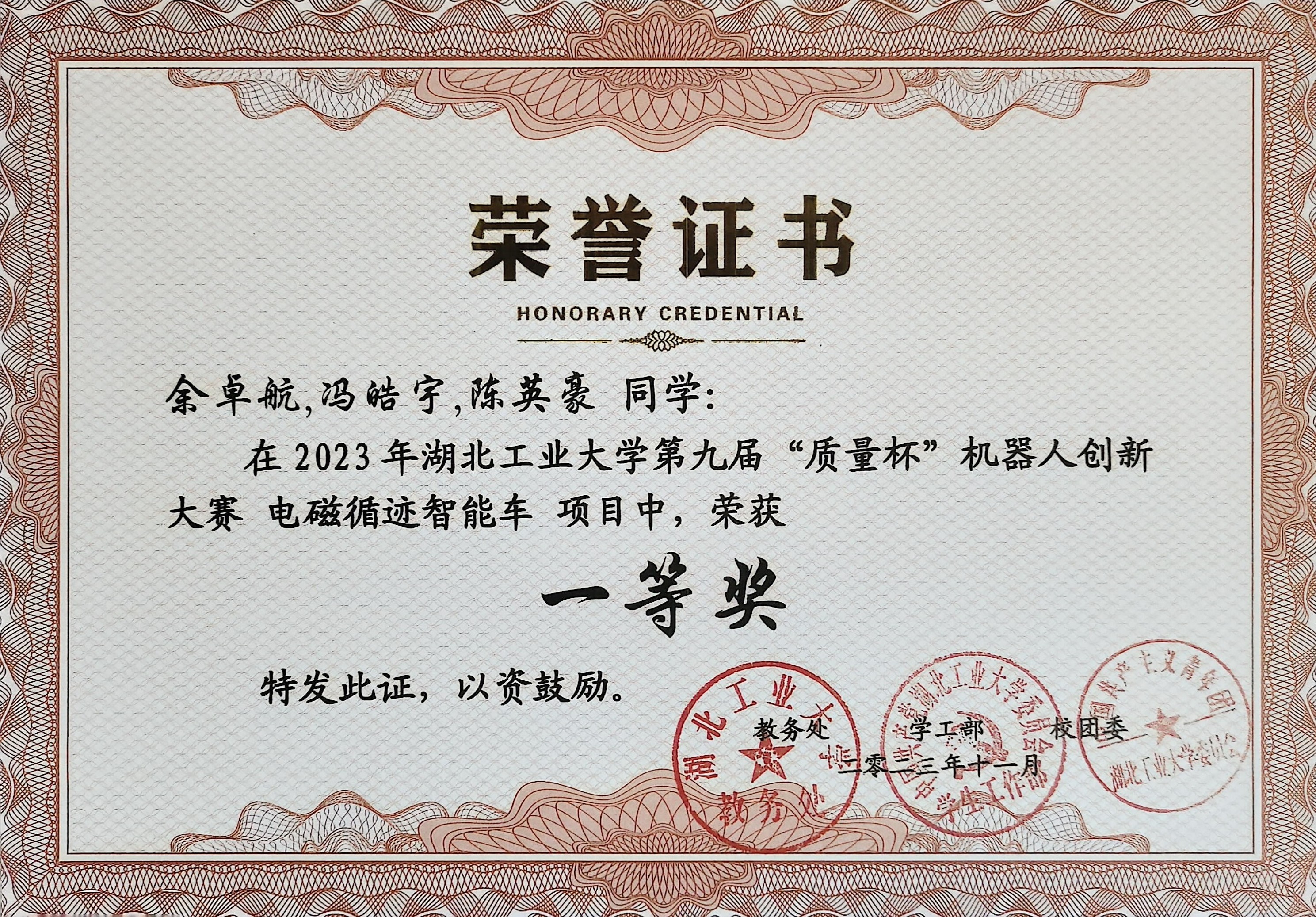 2023.10 作为负责人立项“声道守望——声源定位救援无人机”项目;2023.12 带领团队入驻湖北工业